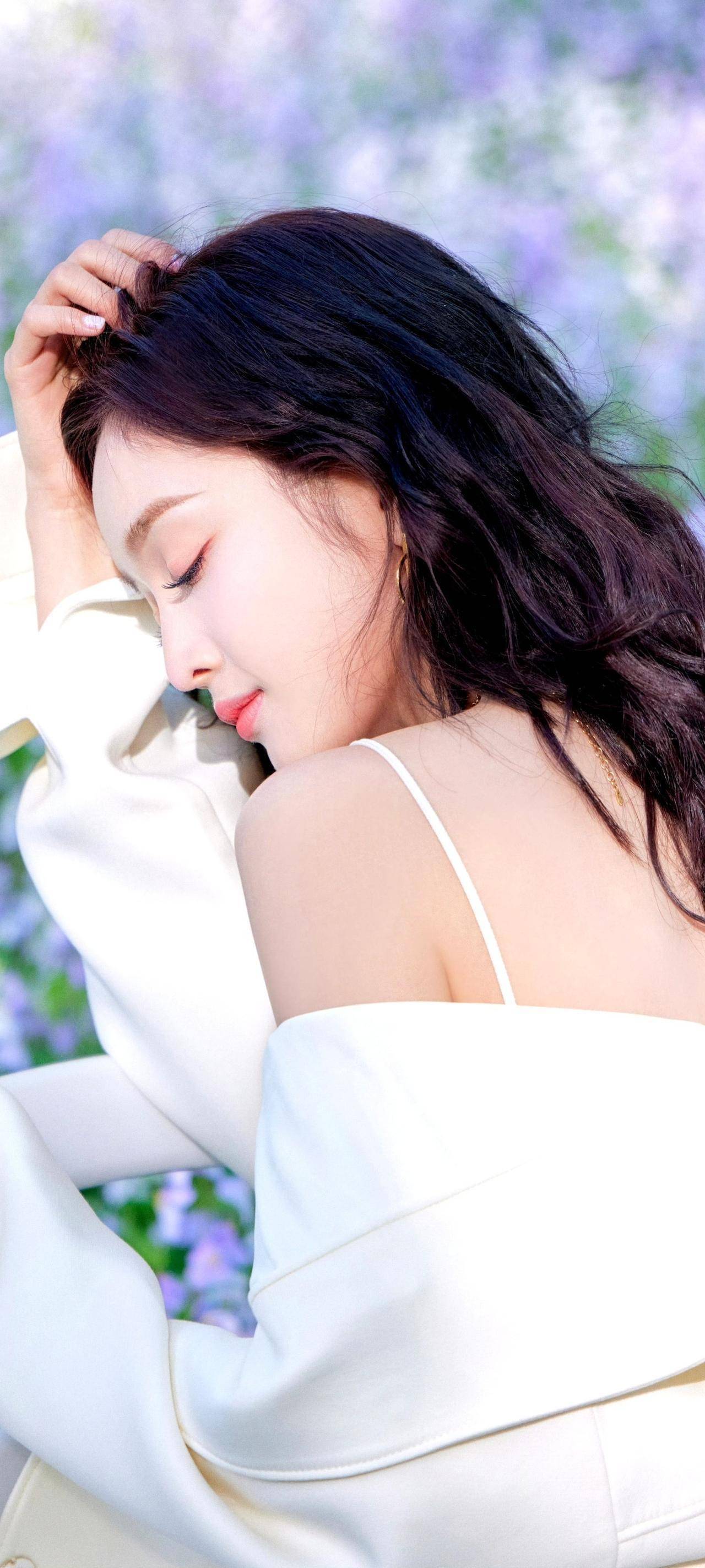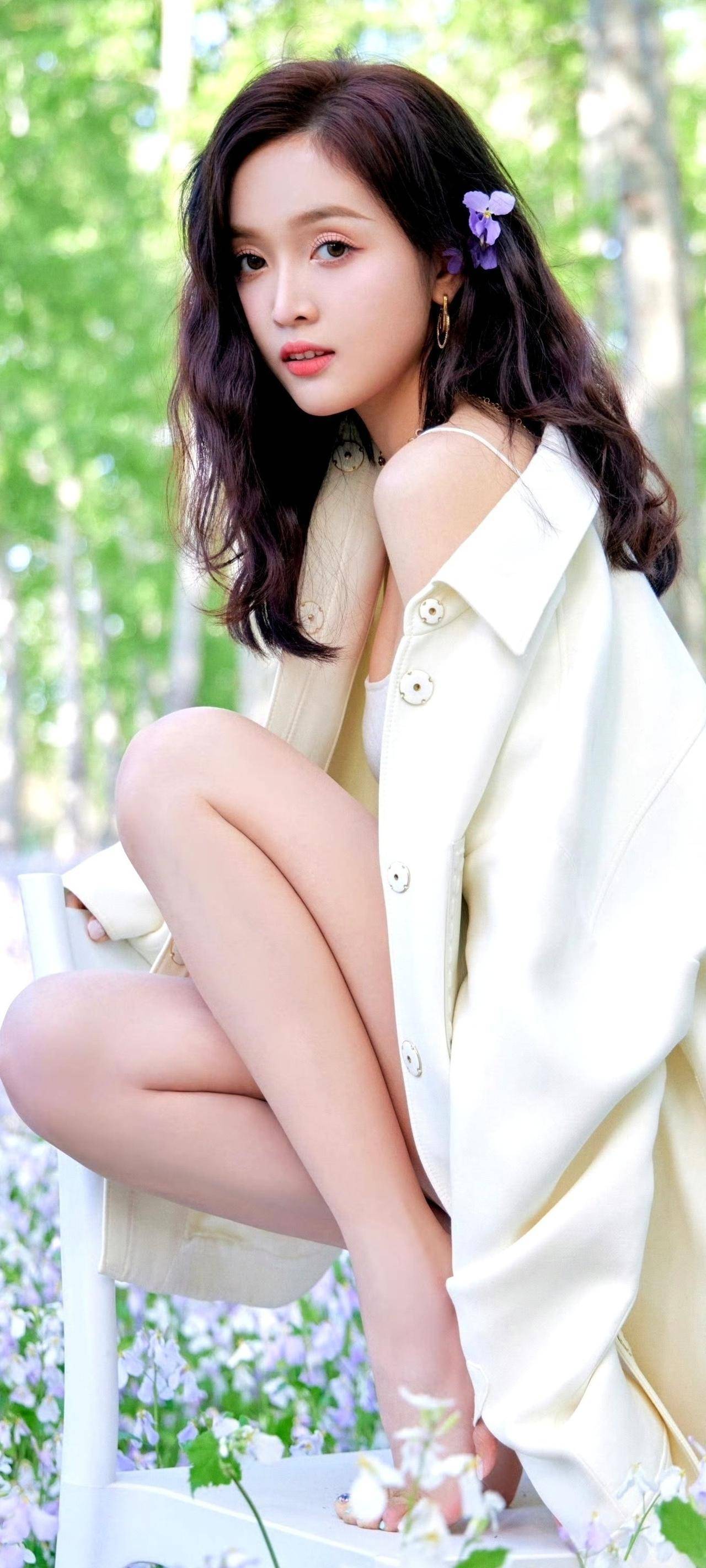 肌肤白皙在紫花绿叶的衬托下更显通透,红唇微抿时是清冷系美人,嘴角带笑又甜得犯规,每一个镜头都像从童话里走出来的精灵?♀️