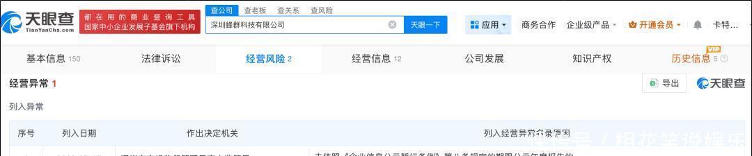 其中,【深圳蜂群科技有限公司】成立于2014年,该公司已于2023年7月,被列入经营异常名录。